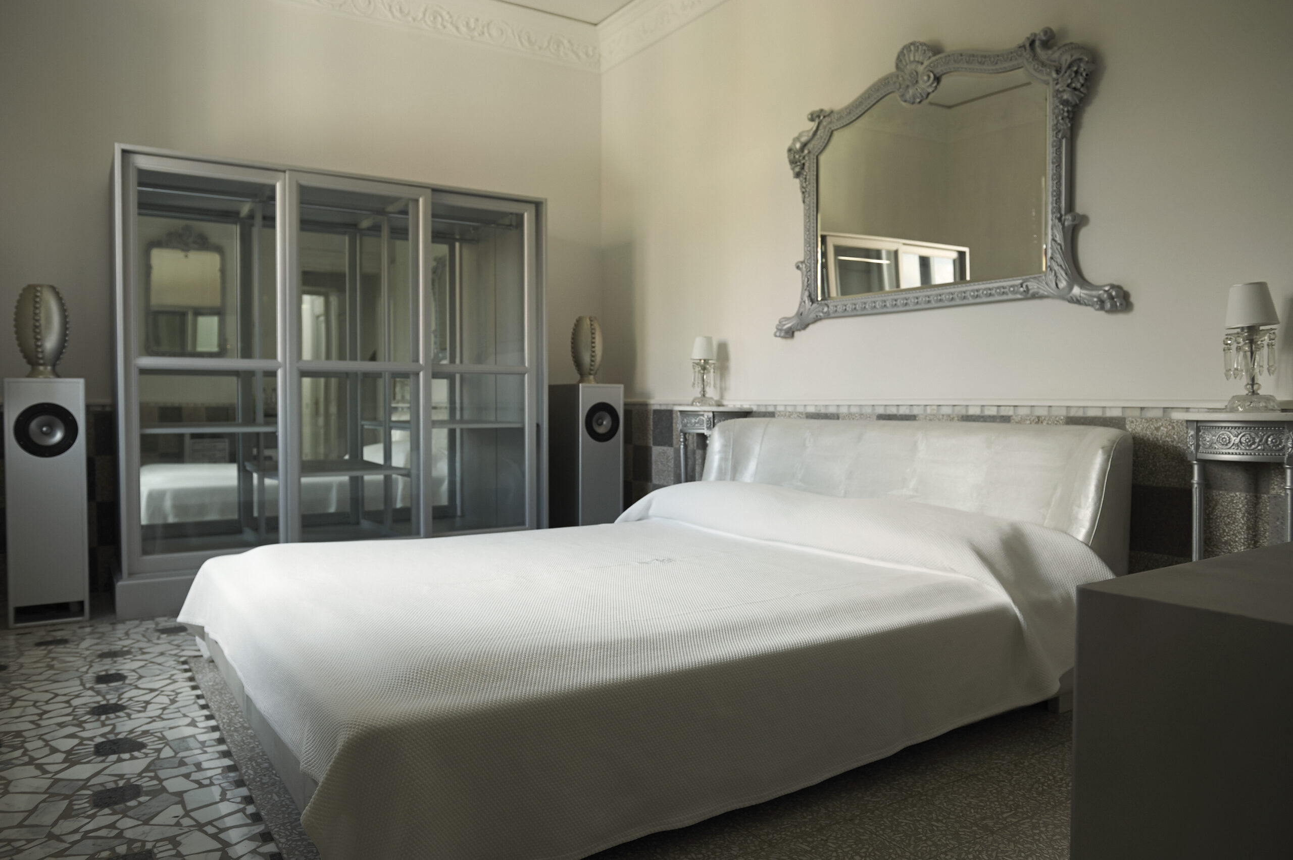 Una copia del bel Mercurio del Giambologna, ora collocata nella fontana al centro del giardino ottocentesco, da il nome alla Mercurio Room. Tutta l’atmosfera della stanza e costruita su tonalità che, dal grigio all’argento – come nel bel letto matrimoniale e nella totalità degli arredi – regolano il cromatismo dell’ambiente. Vi sono ospitati pregevoli mobili di design firmati Anna Fendi Venturini insieme ad abili interventi artigianali su cuscini realizzati in pelletteria.
